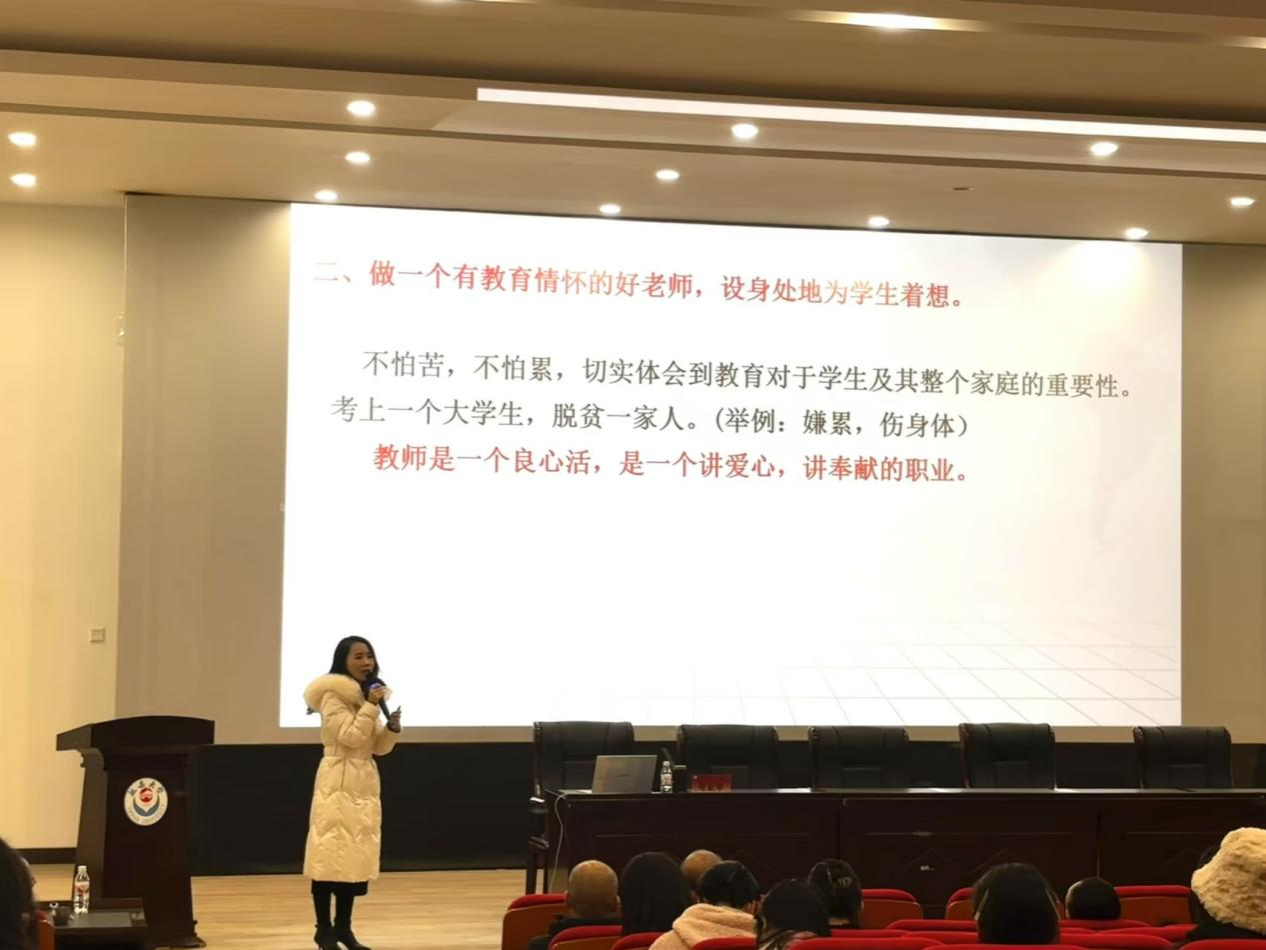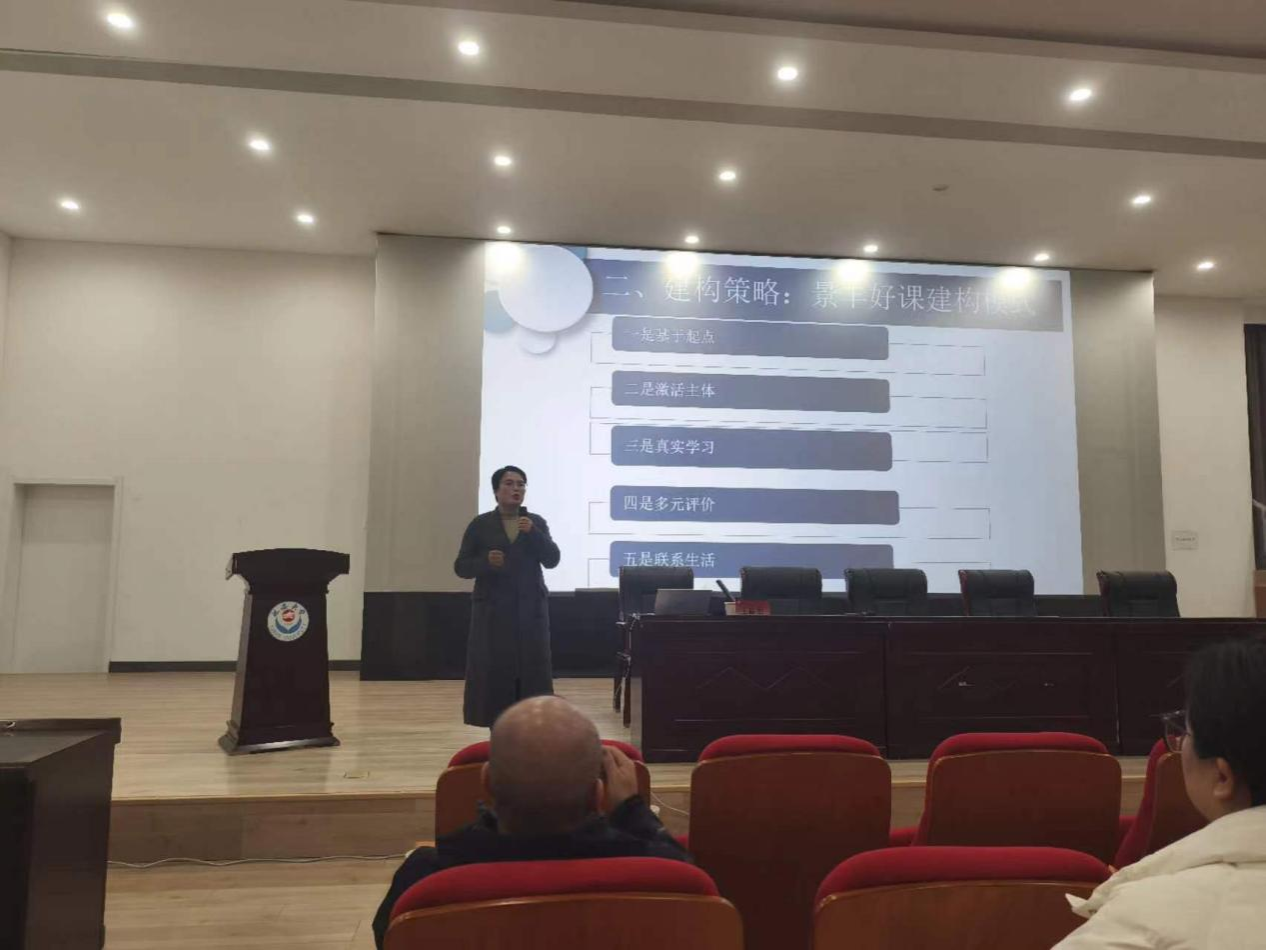 他在报告中指出,教师应该坚持学习,广泛阅读,逐步提升自身的哲学素养、教育理论素养和教学技能素养。教师应该围绕课堂教学的主阵地,瞄准一个目标--核心素养,坚持一个依据--《课标》,基于一个出发点---学情,努力解决一对矛盾---教与学。他强调,课堂必须要体现时代特点,绽放的育人新气象,筑牢“为党育人、为国育才”的崇高使命,确保教师围绕立德树人的目标来教;员工围绕立德树人的目标来学,真正把立德树人融入并贯穿课堂教学全过程;新时代的课堂是立体的、灵动的、超时空的、多样的,是可以突破围墙和固定桌椅束缚的,是员工个性成长和全面发展的生命场域,是员工获取知识技能、提升人格品行的向往之处。
