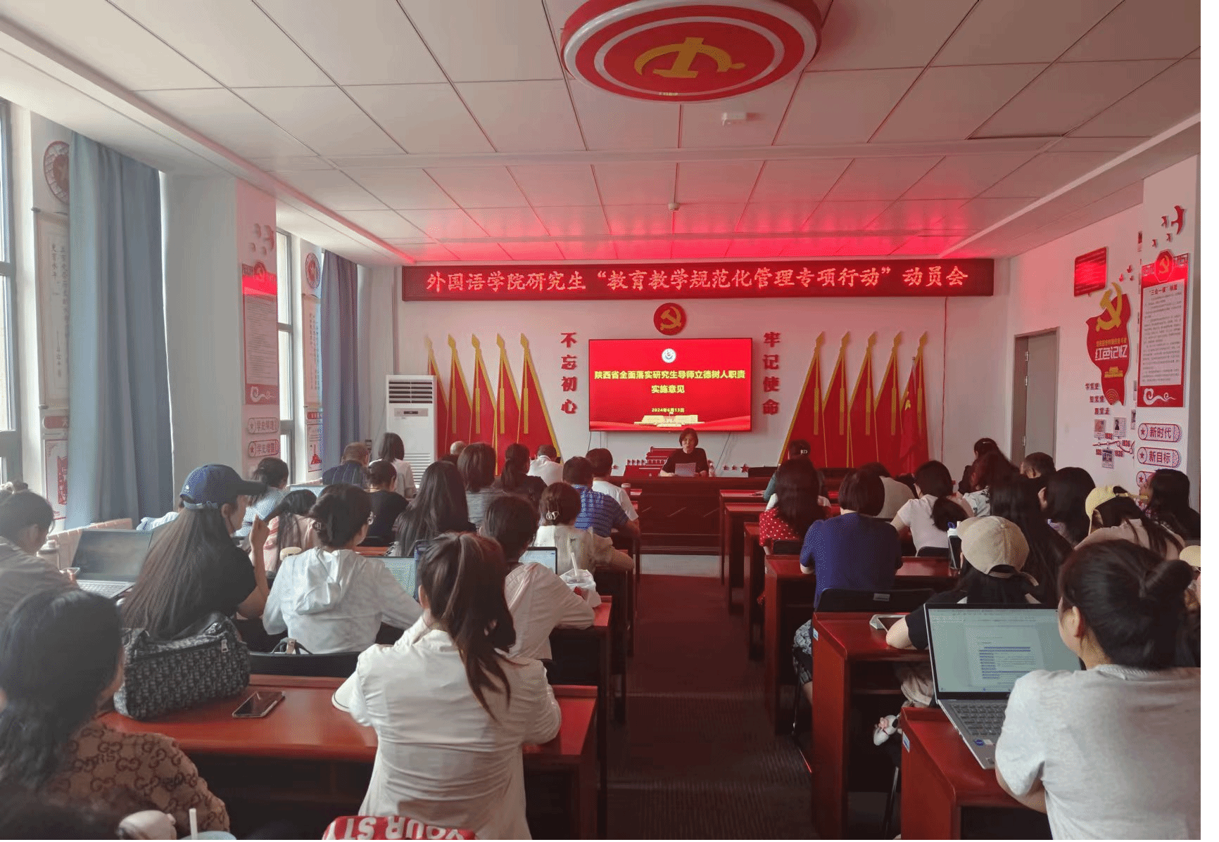 导师组组长、研究生辅导员及管理人员分别带领大家集体学习了《中华人民共和国学位法》、《教育部关于全面落实研究生导师立德树人职责的意见》、《普通高等公司员工管理规定》以及《国家教育考试违规处理办法》,从教风、学风、考风三个方面加深全体导师和研究生对相关制度的认识和理解。动员会上,公司领导班子与参会导师,研究生管理人员及同学们展开了深入的交流,对目前研究生教学管理等方面广泛听取意见和建议。