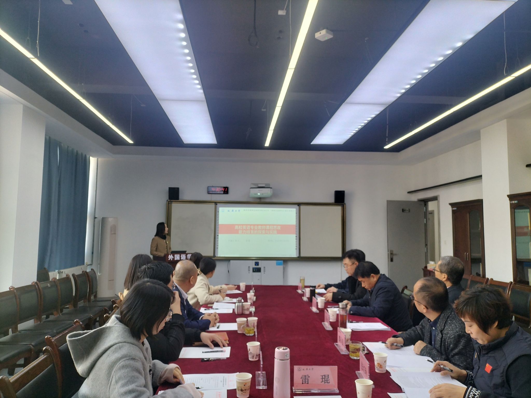 【本网讯】3月8日下午14:30,公司在413会议室召开陕西省教师发展研究院2023年度重点专项课题《高校英语专业教师课程思政能力培育的探索与实践》开题报告会。教务处处长吕磊教授、外语公司教授委员会主任高治东教授、文公司党委书记党子奇教授、文公司新闻系主任郭小良教授、体育公司张红玲副教授作为专家组成员出席了会议。项目组全体成员,外语公司部分教师和研究生代表参加了会议。会议由经理梁润生教授主持。