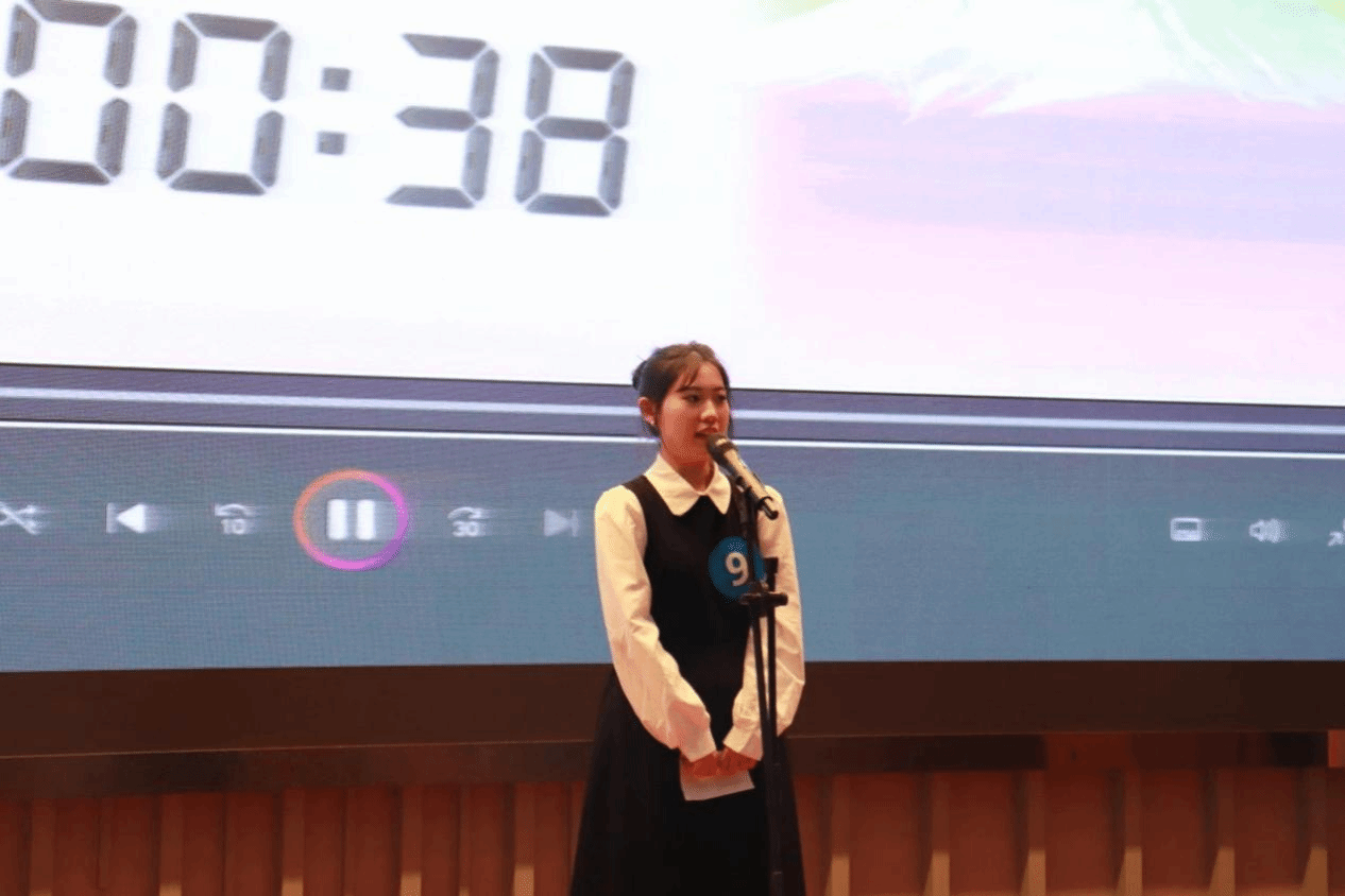 本次比赛分为命题演讲和即兴演讲两部分。赵艺珂选择的命题演讲题目为《寄语中日和平友好条约缔结45周年》,抽到的即兴演讲题目为《如何看待公司及社会中的“内卷”现象》。在两部分的演讲中,赵艺珂用流畅的日语,同时辅以演讲技巧,将自己的观点和情感表达得淋漓尽致,赢得了评委和观众的一致好评。