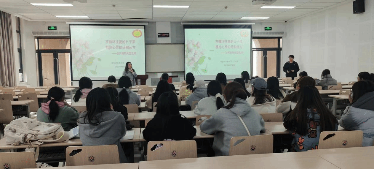 为进一步深化公司英语专业师范生对职业发展的认知和规划,全面提升公司产品技能水平, 11月8日,公司邀请陕西省英语学科带头人、陕西省“教学能手”、“教学新秀”、“三秦名师”、延安市“十佳青年教师”、延安实验中学高级教师张海燕、艾媛媛分别作了题为“最美的风景在路上”和“如何做阳光型教师”的专场报告。学科教学2023级研究生、英语专业2021级、2022级本科生共计280余人聆听了报告。报告会分别由李世荣副经理和许多文副书记主持。