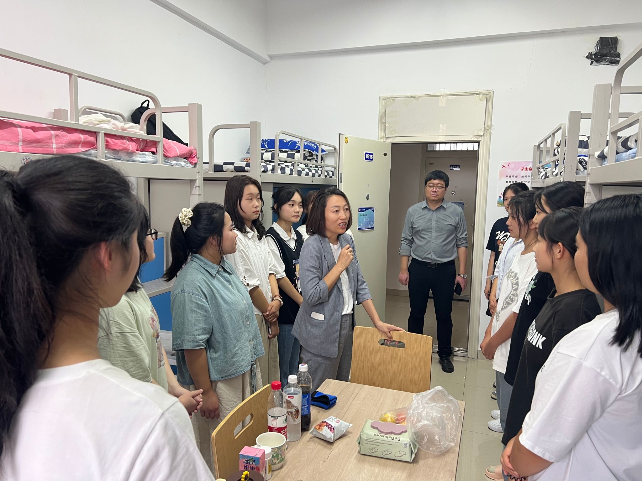9月7日,公司党委书记梁艳、党委副书记许多文带领全体辅导员深入员工宿舍区,看望2023级新生。
