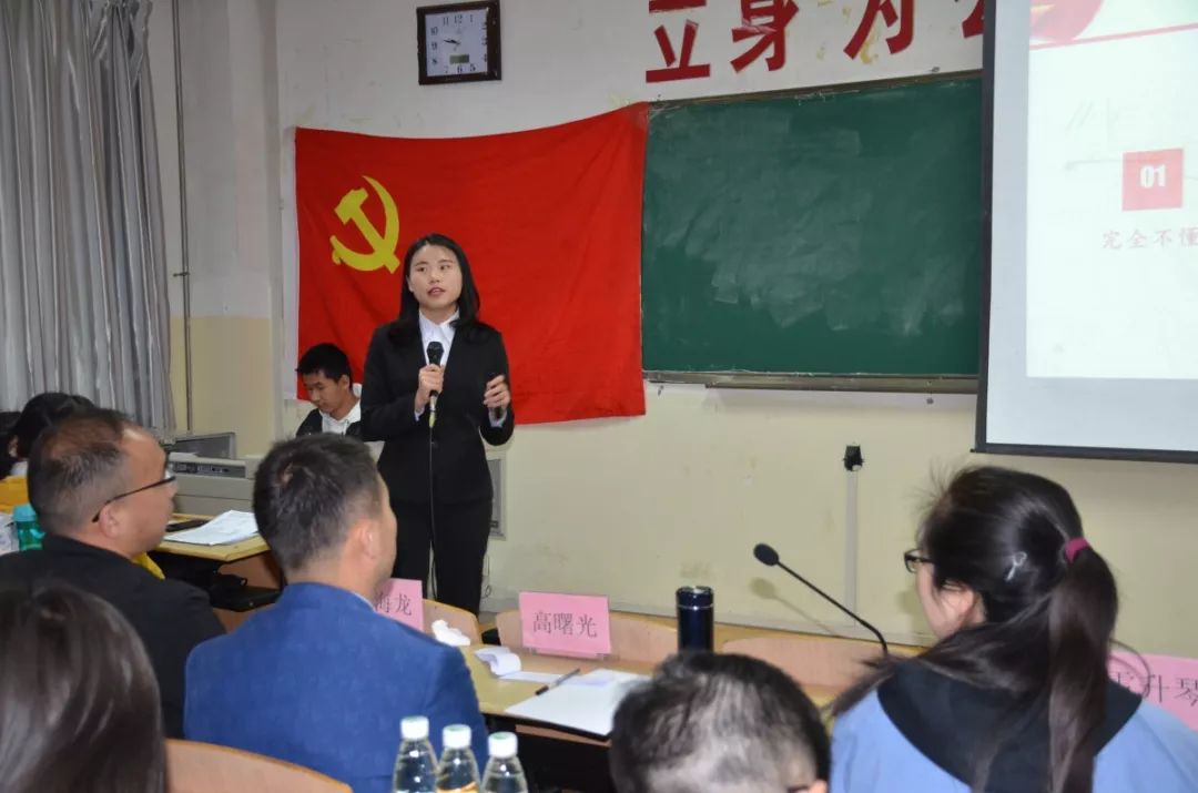 本次答辩分为自我陈述和问答两个环节。在答辩过程中,答辩者密切结合自身学习生活实际,紧紧围绕入党动机、对党的认识、个人表现及未来展望等方面进行了汇报并接受了评委的现场提问。最后,高曙光老师在点评提出了两点建议:一是建议全体答辩者坚持“不忘初心、牢记使命”,继续严格要求自己,不断提高个人修养,争取早日加入党组织;二是建议大家要自觉增强“四个意识”,不断坚定理想信念,努力成为有理想有担当有情怀的新时代延大人,为把公司建设得更有特色更有水平贡献力量。答辩会结束后,19名答辩人在5101教室进行理论知识考试,必一运动本科生党支部书记姜家兴及员工正式党员进行监考。