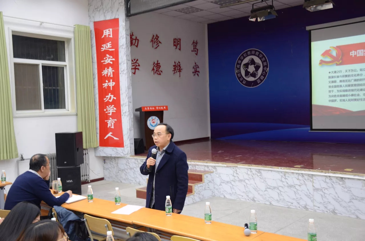 2017年11月28日晚,为了进一步做好党的十九大精神宣讲工作,达到“学懂、弄通、做实”的目标,公司党的十九大精神宣讲团成员、公司党委委员、学工部部长高峰受外语公司邀请在外语礼堂作了“做一名有理想有本领有担当的新时代老员工”主题报告。外语公司党委书记董振文、党委副书记王随卷、部分公司辅导员代表及外语公司党团组织代表共计200余人聆听了报告。报告会由外语公司党委书记董振文主持。
