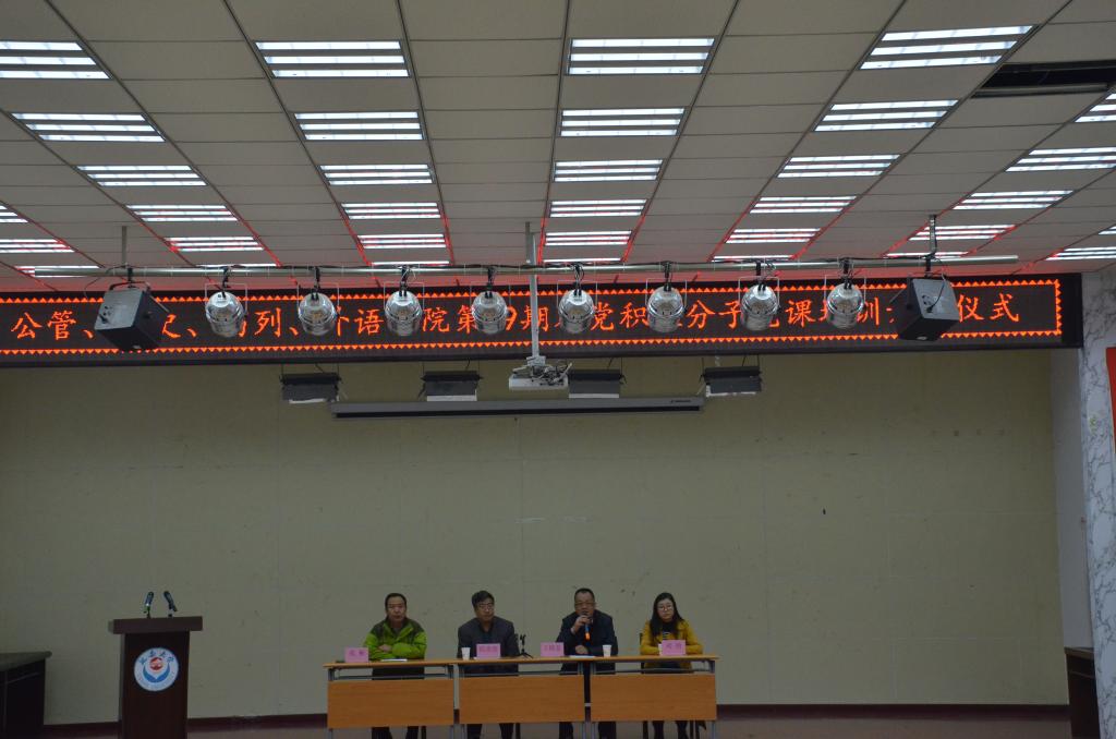 根据必一运动官网党校统一安排,10月29日上午8:30,外语、公管、马列和历史系分党校联合在外语礼堂举行了第49期入党积极分子培训班开班典礼。公管公司党委书记兼分党校董事长侯虎虎、外语公司党委副书记兼分党校副董事长王随卷公管公司党委副书记、马列公司党委副书记兼分党校副董事长张彬、历史系党总支副书记兼分党校副董事长刘艳、各公司党校秘书以及4个单位150余名入党积极分子参加了开班典礼。典礼由王随卷老师主持。