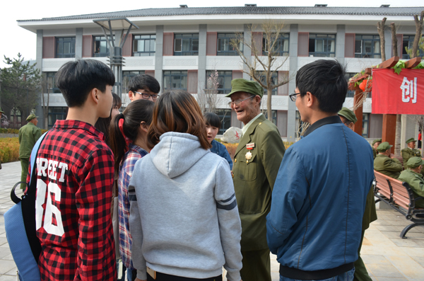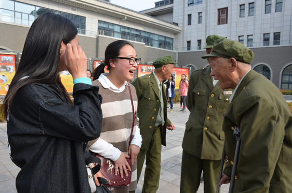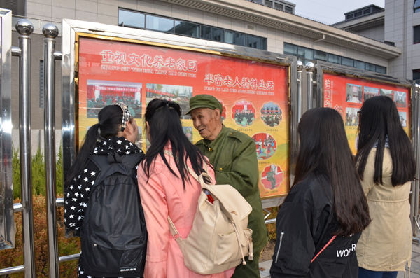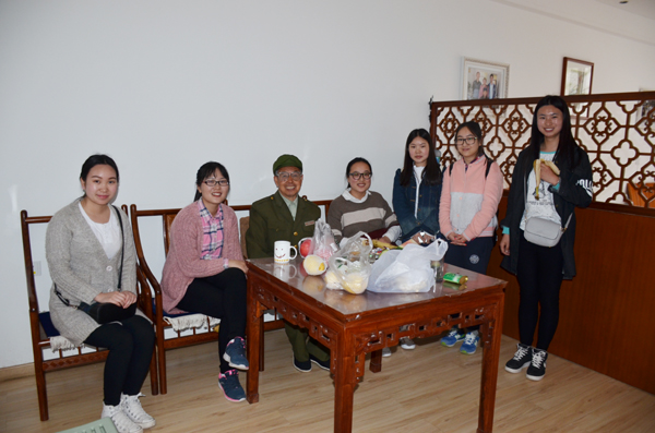合唱结束后,志愿者们走进老人的宿舍,为他们打扫卫生,听他们讲革命的故事,也向老人们讲述自己的学习生活情况。