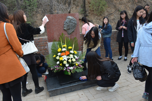 扫墓活动结束后,全体参与活动人员来到杨家岭革命旧址,在中共七大礼堂前,集中聆听了历史文化公司李生策老师讲授的《习近平总书记和为人民服务的坚定信念》现场教学课。李老师声情并茂,为大家详细讲述了习近平总书记在梁家河村插队时的故事,重现了习近平总书记在延安插队期间心系群众、带领群众、奉献群众、为人民服务的点点滴滴,使所有活动参与人员深受教育。
