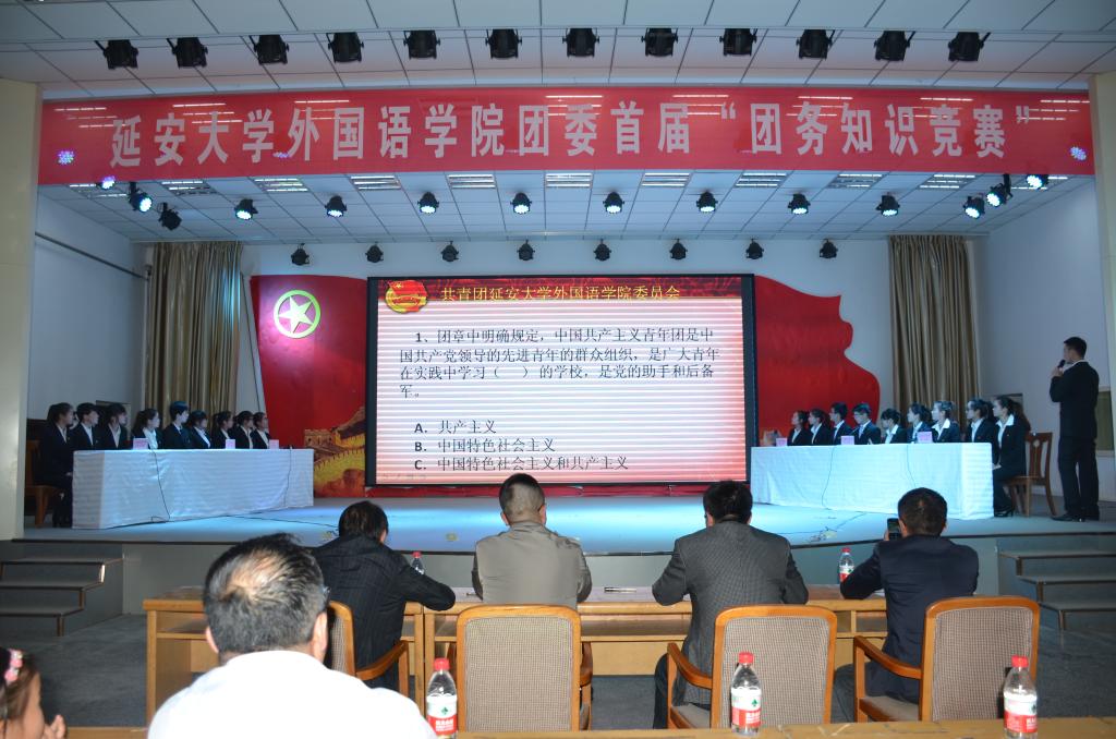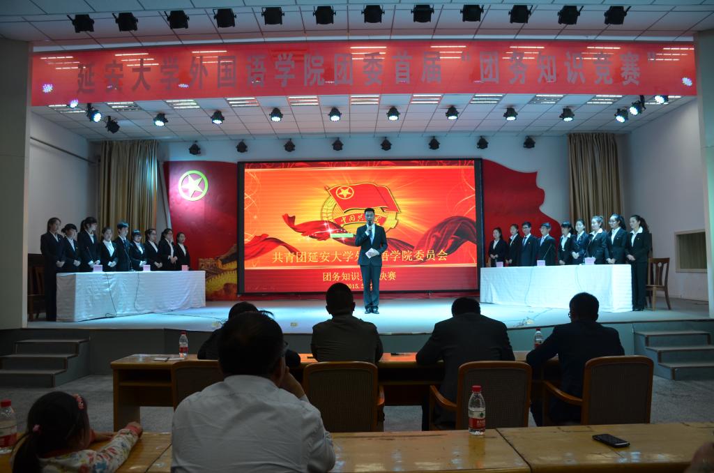 2015年5月12日晚,为了进一步贯彻落实上级团委关于开展“四进四信”主题教育活动的精神,不断创新思想引领和成长服务方式,提升团组织的凝聚力和团员的身份认同感,外语公司团委在员工活动中心举办了首届“四进四信助我成长”团务知识竞赛。学工部副部长王彦杰、外语公司党委副书记王随卷及公司400余名师生观看了比赛。校团委副书记刘江、历史文化公司团委书记、教科院团委书记高飞翔、体育公司团委书记刘金辉担任评委。