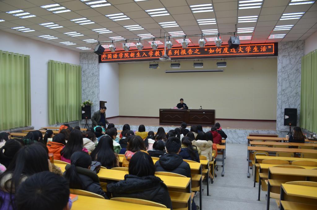 为了帮助2014级新生尽快适应老员工活,树立明确目标,12月3日下午,学工部(处)部长高峰老师受邀在外语礼堂为外语公司2014级全体员工做新生入学教育系列报告之“如何度过老员工活”。报告会由外语公司党委副书记王随卷老师主持。