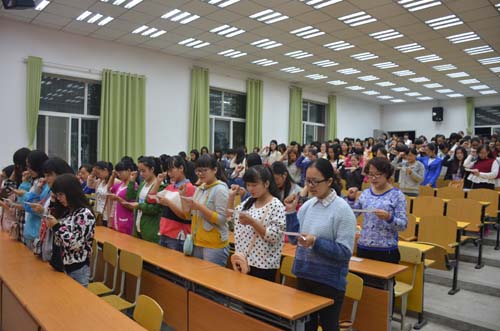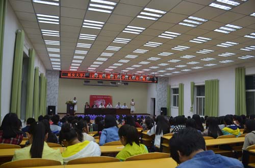 9月14日 晚,以“新起航、心期待”为主题的迎新晚会于开学典礼之后在外语礼堂举行。公司领导与辅导员、班主任及152名新生一同在外语公司礼堂观看了迎新晚会。迎新晚会上,活力四射的开场舞赢得了现场观众的阵阵喝彩,一人多角的英语配音《冰雪奇缘》展现了高超的表演技艺和口语水平,新生带来的东北方言版的《再别康桥》让全场笑声不息,舞蹈串烧将晚会推向了高潮。一个半小时的晚会气氛热烈,时刻展现了以迎新为主题、以新生为主体,为新生奉上了一场丰盛的精神晚宴。