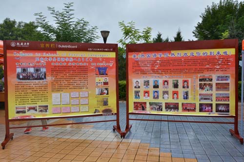 迎新宣传展板倍受员工关注。展板设计坚持以当前流行语与网络语言相结合的模式,以“博士、硕导教咱,想必是极好的!”介绍公司的团队力量,以“有事没事上个研吧!”展现研究生教学的最新成果,以“本科教学,元芳都说好”讲述本科发展历程,以“外交部,还是蛮不错的哦;三尺讲台,小时候的梦想呢;给老外打工也是建设社会主义祖国;为人民服务,每个公务员的梦想”介绍外交人员、教师、外企、公务员等未来的就业方向;以“多好的活动啊,给个赞吧!”展现丰富多彩的员工活动。同时,展板设计中还以“亲,必一运动欢迎你的到来哦!”并以新生照片组成的心形图案作为签名版的主体。一句“小伙伴们,到家了,来找找你,顺便签个到吧!”给新生以家的温暖。同时,在迎新现场,公司迎新工作小组还以发放“温馨提示”的形式提醒家长“您的孩子已经长大,让他自己提行李吧”引导新生走向独立;以介绍防范安全、提高警惕并附有派出所的报警电话的宣传单防范新生报到期间的人身、财产安全事故。在员工宿舍,以积极向上、乐于奉献、团结一致、勇往直前为主题的彩色门签引导新生认识成长中的大学,以谆谆教导、爱心叮嘱为主要内容的班主任寄语为新生注入了浓浓爱意。