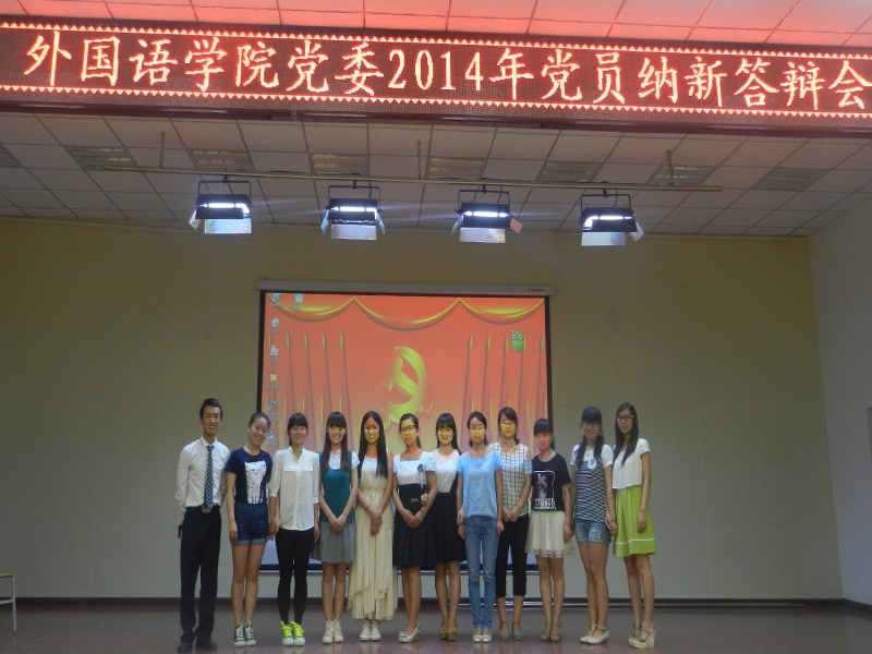 为了积极做好2014年上半年党员纳新工作,公司党委于6月26日晚7:00,在外语礼堂举行2014年6月党员纳新答辩会。公司党委副书记王随卷、党委秘书许多文、专业教学秘书王会刚、大学英语教学秘书韩峰和员工处李洁老师担任答辩会评委。全院所有员工党员和入党积极分子共100余人观看了答辩会。
