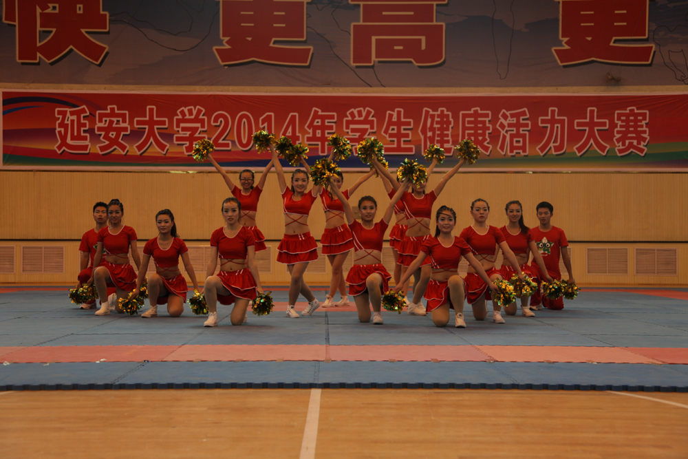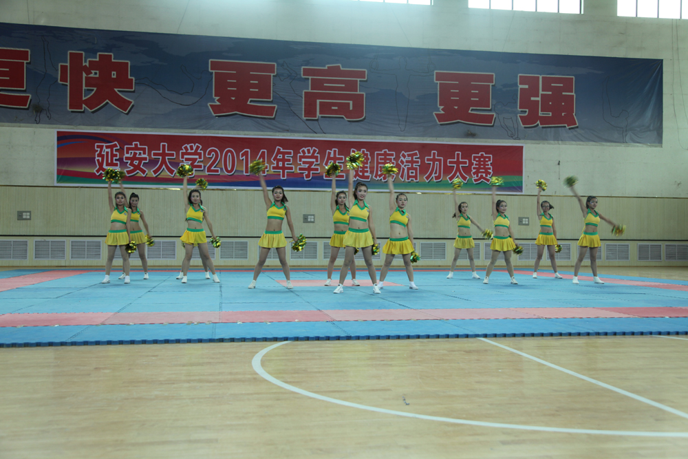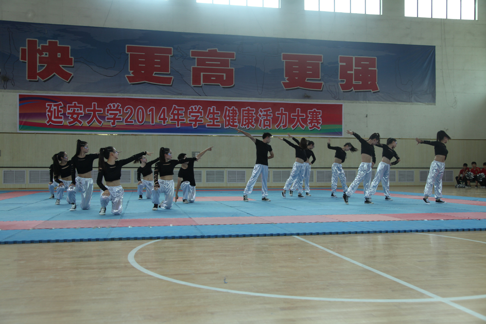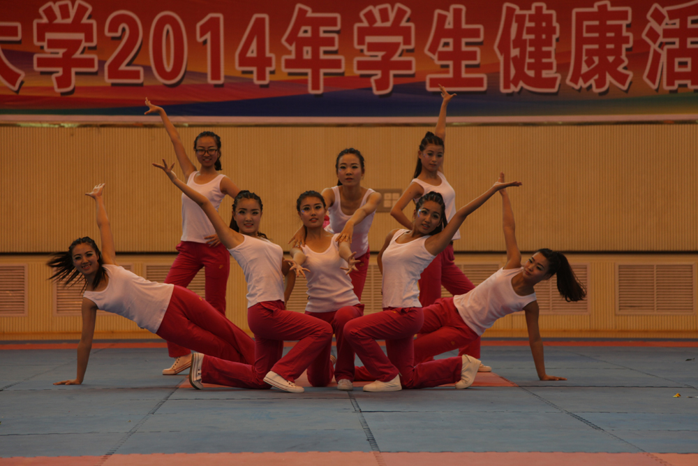 5月24日下午,公司2014年健康活力大赛在校体育馆圆满结束,全校共有13个公司带来的45个单项节目参赛。公司代表队共有队员14人,共参加了3个必选项目:健身健美操四级、啦啦操和街舞,1个自选项目:自编套路(花球)的比赛。